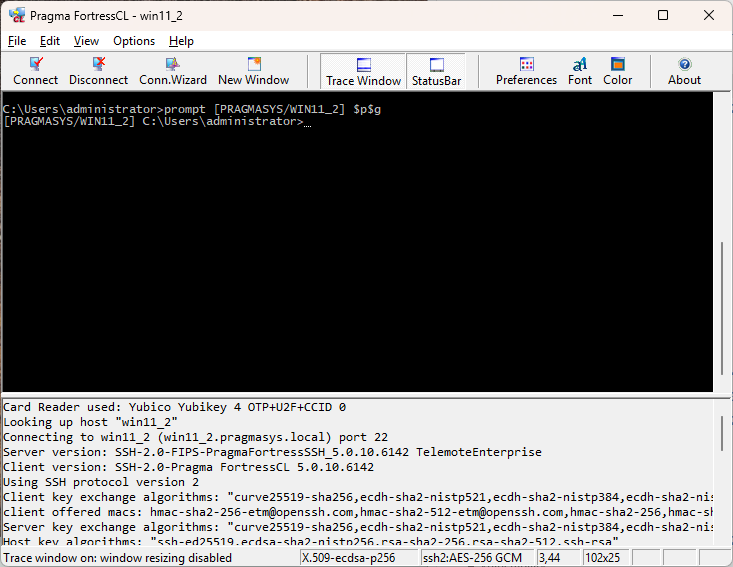 you will be prompted for the PIN. Enter it. You will get a session like below.